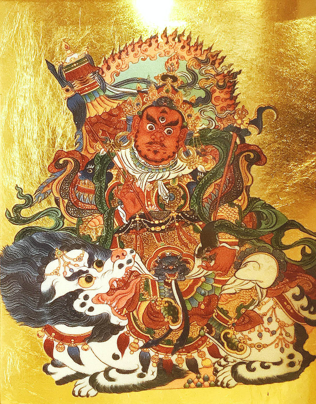 貝林傳承之紅財寶(多聞)天王乃伏藏傳承,一般多聞天王為黃色表示增長事業,但是貝林傳承為紅色表示除增長財富外,亦同時成就權勢之懷愛事業,並且是三眼,表示成就本智之極密實相,能即刻成就眾生心中所求,是貝林傳承不共之九大護法之一。