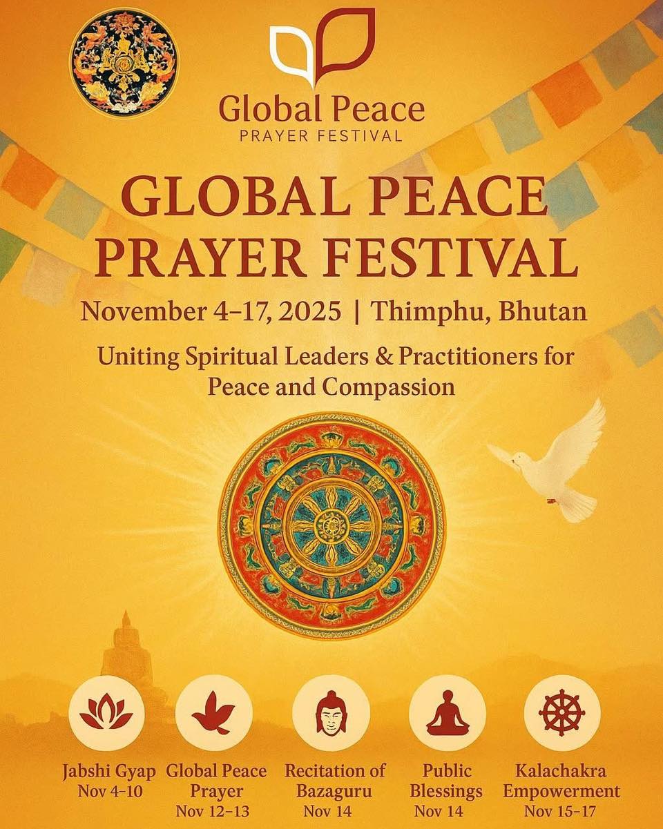 由不丹王國主辦,這場盛會將彙聚來自佛教各宗派、傳承及國家的諸多尊貴高僧大德到不丹。其中包括:吾等上師 - 崗頂法王、不丹國師傑堪布、大司徒仁波切、雪謙冉江仁波切、宗薩欽哲仁波切、堪欽南卓仁波切等等。